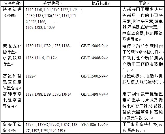 附:(下面是重要的硬質(zhì)軟磁合金的特點(diǎn))